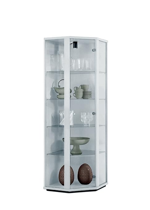 Glasvitrine Eckvitrine Alu Weiss Buche Vitrine Beleuchtung In