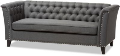Grey Tufted Fabric Sofa With Nailhead Trim Total Rooms